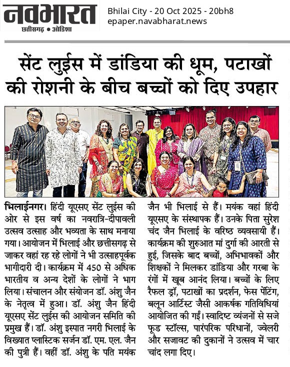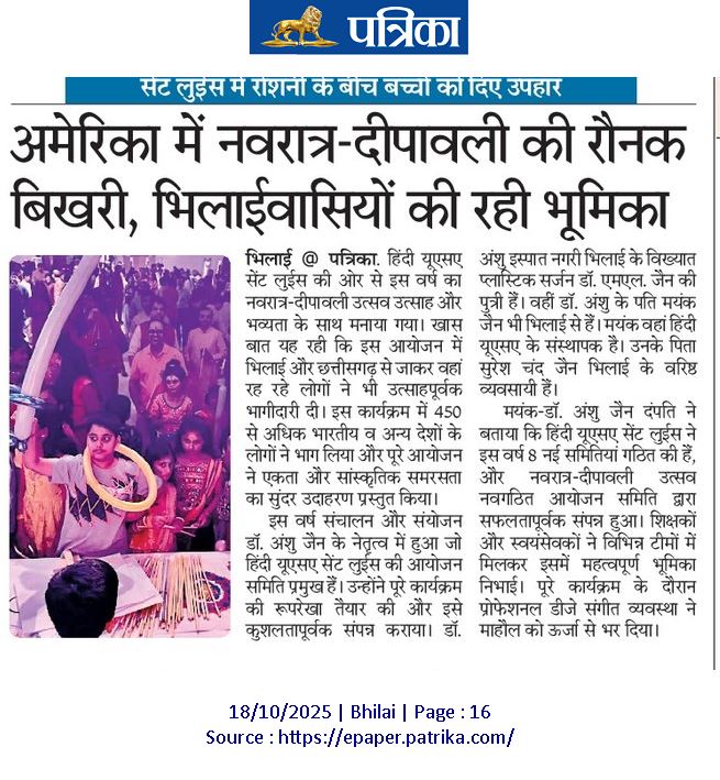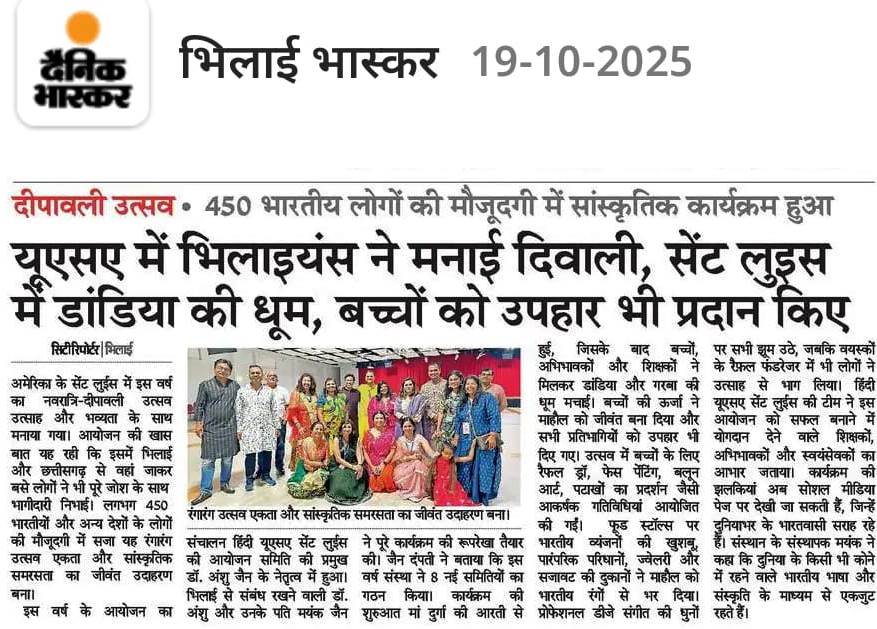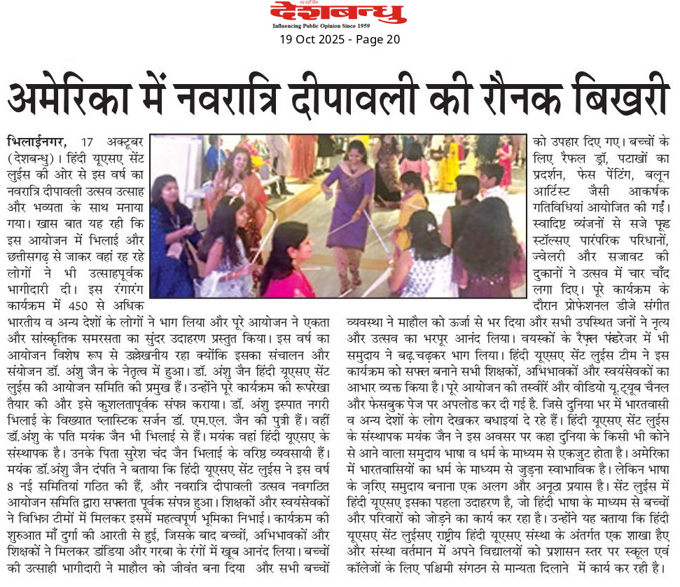 “We are delighted to witness such overwhelming enthusiasm from our students, parents, and volunteers,” said Mayank Jain, co-founder of HindiUSA St. Louis. “Our mission is to build a community where families celebrate together and children take pride in their Indian heritage.”